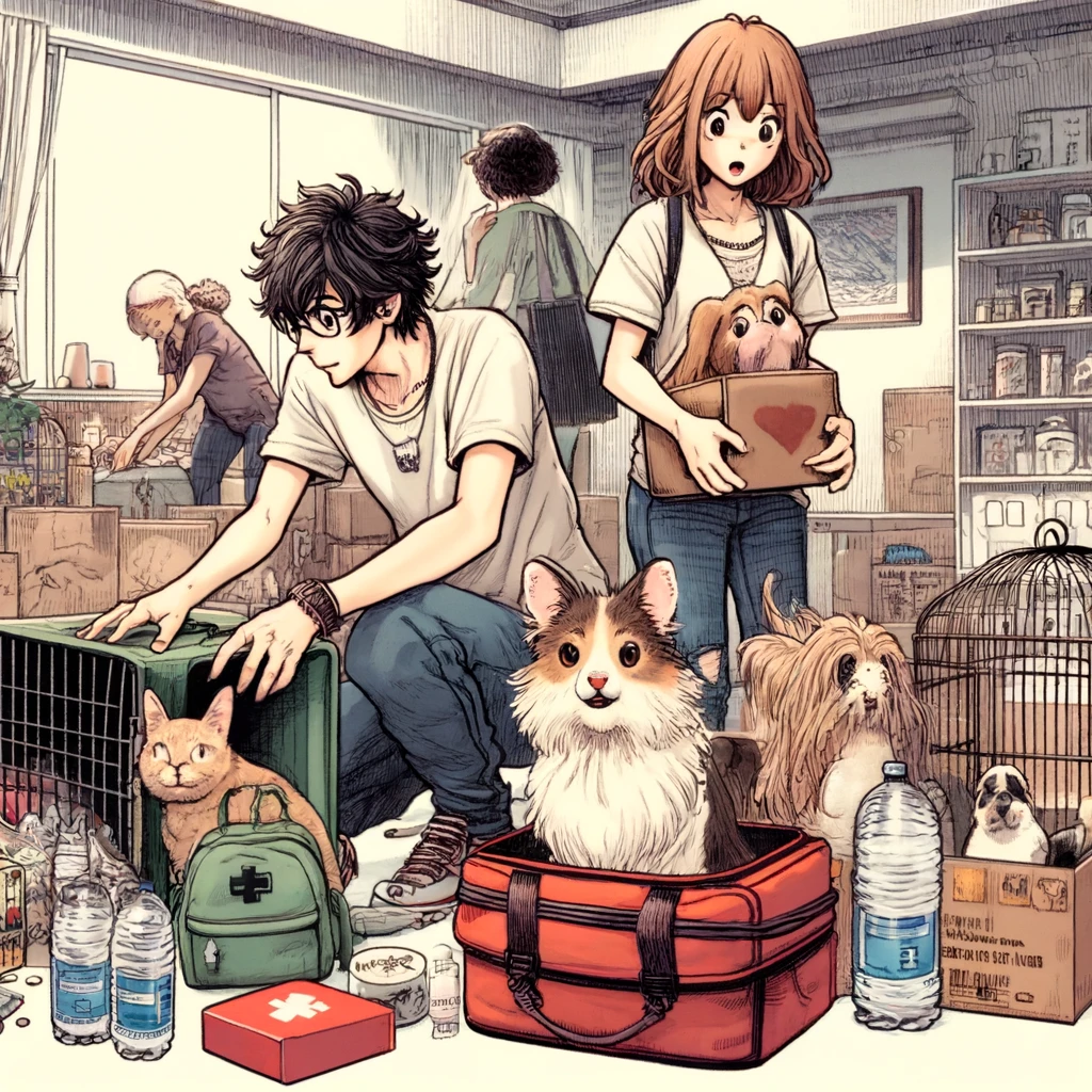- 非常用キットの準備:ペットの食料、水、医薬品、医療記録、リードやキャリーケースを含む非常用キットを用意してください。